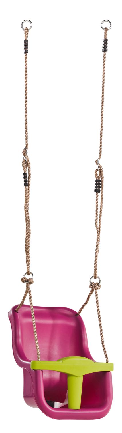 Dieser hübsche Babyschaukelsitz besteht aus witterungsbeständigem, robustem HDPE-Kunststoff und ist aus einem Stück gefertigt. Die ergonomische Form des Schaukelsitzes schützt dabei den Rücken Ihres Kindes. Zusätzlich besitzt die Babyschaukel ein abnehmbares T-Stück, das fest mit dem Sitz verbunden wird, sowie einen Sicherheitsgurt. Damit sorgt der Sitz für ein sicheres Schaukelvergnügen im Freien. Der Schaukelsitz wird über zwei Punkte mit dem Schaukelgerüst verbunden und eignet sich für Kinder bis zu einem Alter von 36 Monaten.