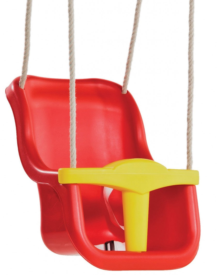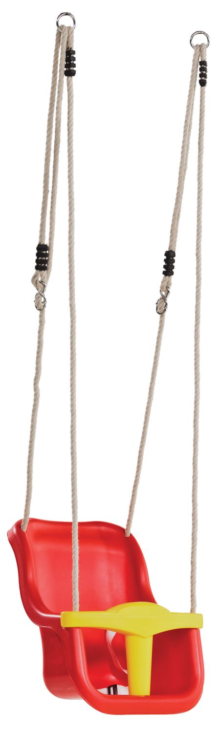 Dieser hübsche Babyschaukelsitz besteht aus witterungsbeständigem, robustem HDPE-Kunststoff und ist aus einem Stück gefertigt. Die ergonomische Form des Schaukelsitzes schützt dabei den Rücken Ihres Kindes. Zusätzlich besitzt die Babyschaukel ein abnehmbares T-Stück, das fest mit dem Sitz verbunden wird, sowie einen Sicherheitsgurt. Damit sorgt der Sitz für ein sicheres Schaukelvergnügen im Freien. Der Schaukelsitz wird über zwei Punkte mit dem Schaukelgerüst verbunden und eignet sich für Kinder bis zu einem Alter von 36 Monaten.