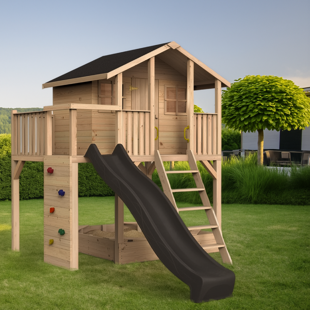 Das geräumige Stelzenhaus Tobi Premium wird frachtfrei geliefert, ist schnell aufgebaut und ein Riesenspaß für die ganze Familie!